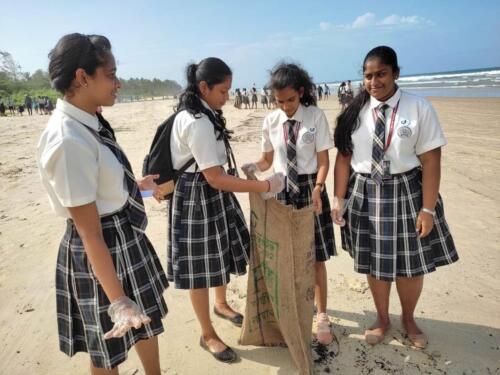 The students were provided with gloves, sanitizers, masks and badges by the organisers. Divided in small groups the students helped to clean a portion of Majorda beach by picking up plastic waste and other waste material washed up to the shore. This was followed by a group photo-session. Refreshments were also provided to the students at the end of the cleanliness drive.
