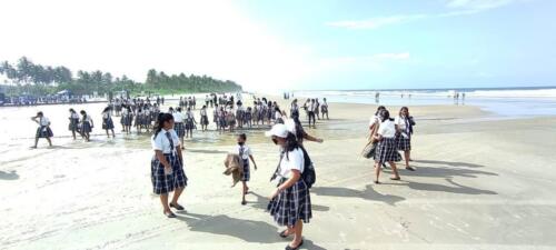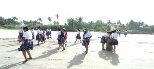 The beach cleanliness drive was attended by around 100 students of std XII Arts accompanied by Tr. Moris Almeida, Tr. Maria Gracias Flor Da Costa, Tr. Raleeta Cardozo, Tr. Melwyn Gomes, Tr Rosebel Fernandes and Tr. Melicsha Albuquerque. The event which begin at 8 AM was titled ‘Clean Coast, Safe Sea program’ with an aim to provide clean and safe beach environment for the locals and tourists who visit the beaches of Goa .